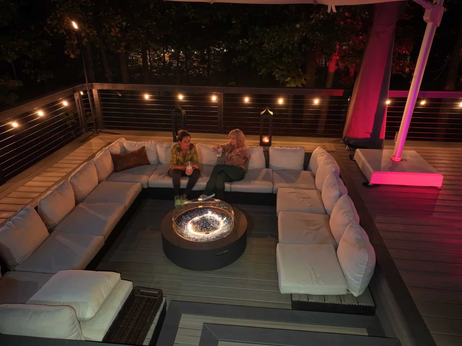 - Recessed or string lighting to create a cozy nighttime setting